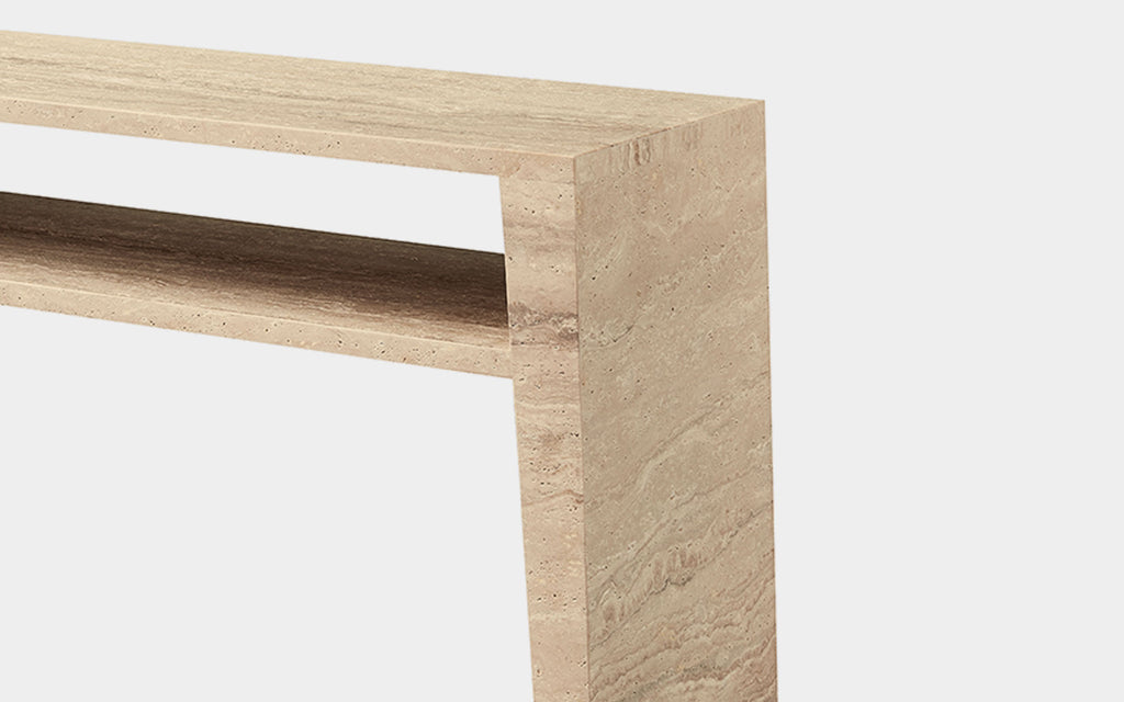 • Travertine stone top exudes natural elegance and durability.