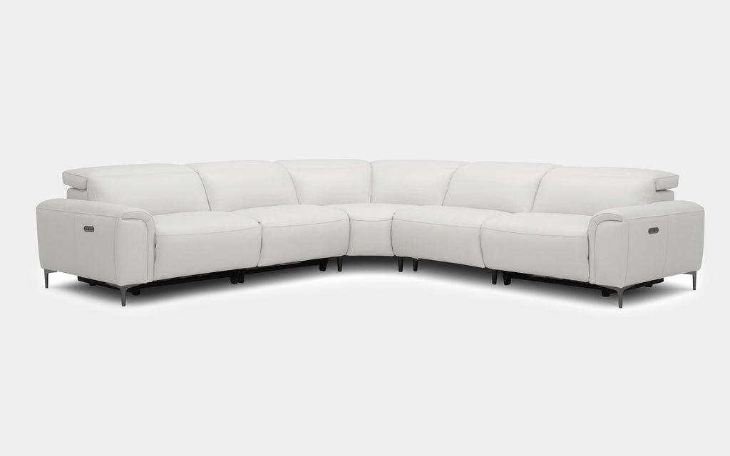 Create your very own modern reclining sectional. It features 2 power recliners and 4 adjustable headrests. Relax blissfully with family and friends.